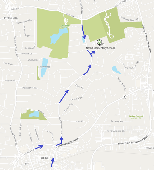 1. Take Lavista Rd. east to Lawrenceville Hwy.