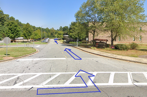 The rear parking lot where the cafeteria is located is all the way at the end of the school building. Drive down with the building on your right and turn right into the parking lot.